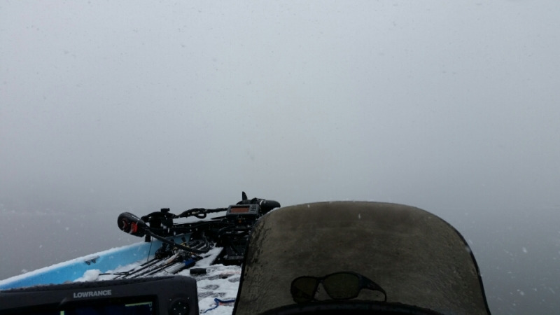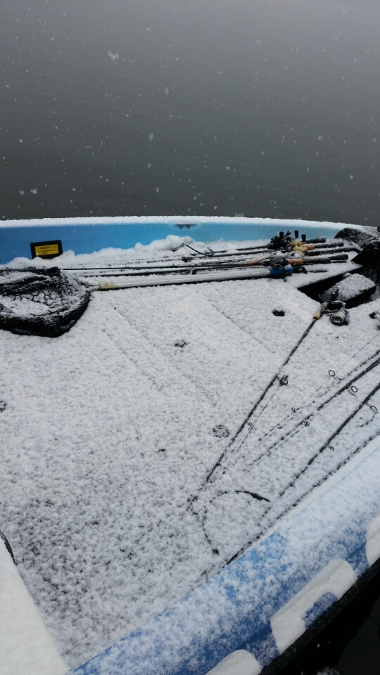 リレンジ等をメインに回りますが、全体的にベイトもバスも沈み気味で反応無くお昼過ぎに道路にも雪が積もりだしライターさんの帰路も考慮して早上がりで終了。